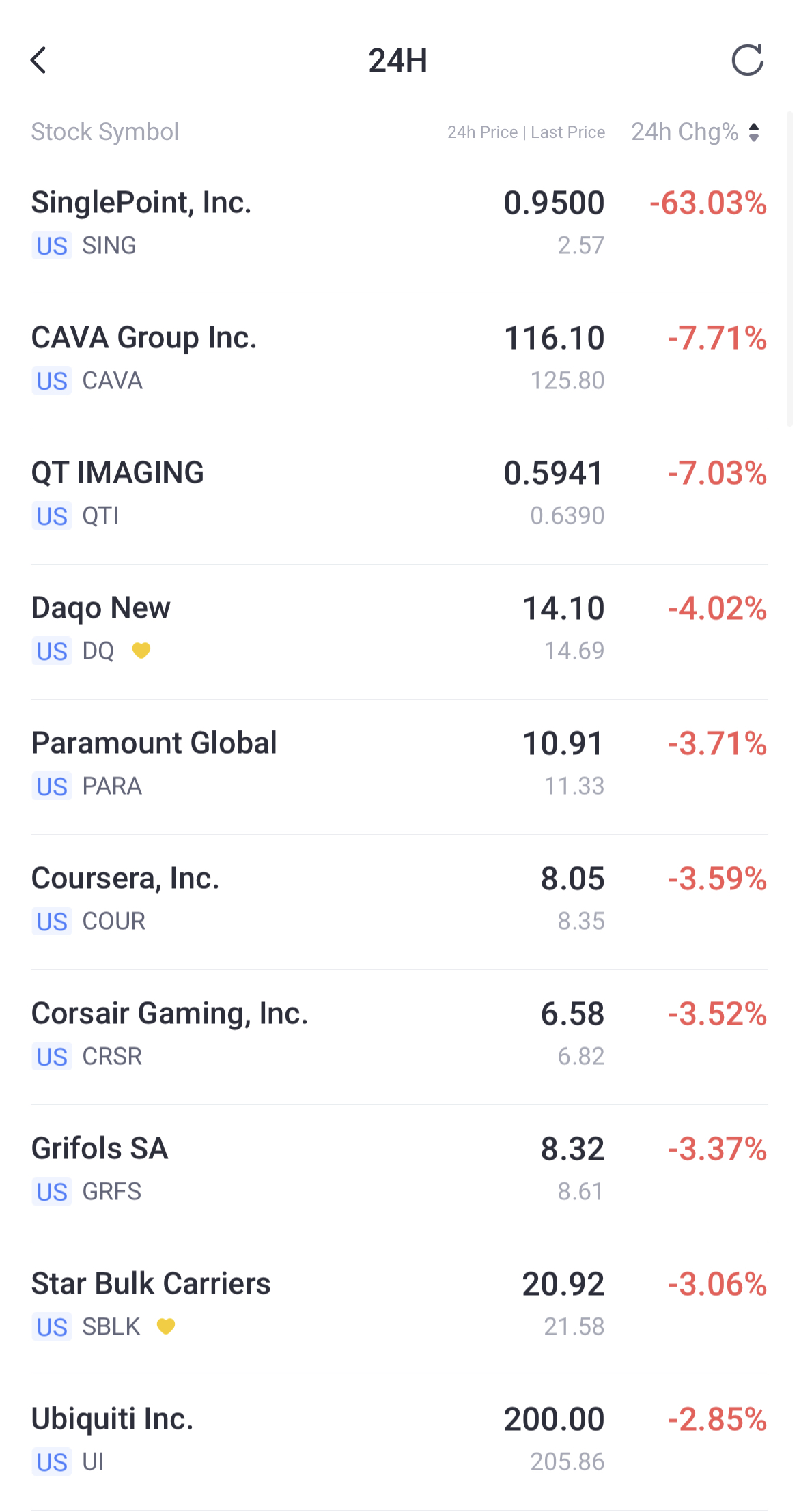 TOP10 penurunan dalam perdagangan semalam: