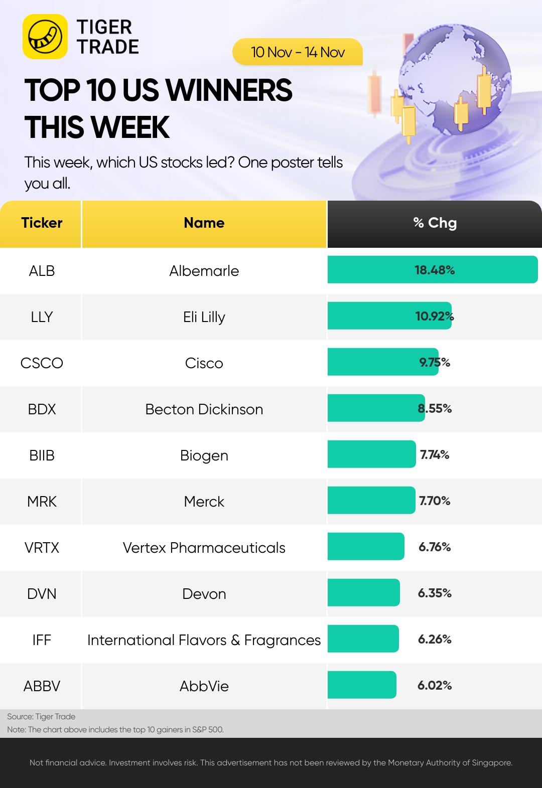 Di bawah ini adalah 10 saham dengan kenaikan tertinggi di S&P 500 untuk pekan yang berakhir 14 November: