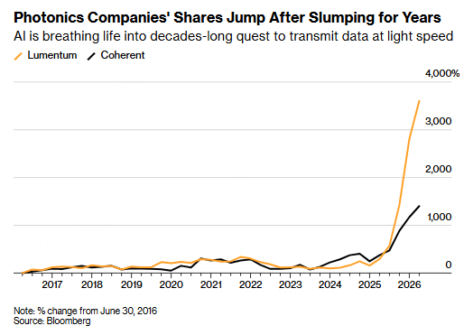 Perusahaan, yang bulan lalu menerima investasi sebesar $2 miliar dari Nvidia Corp., bersama saingannya Coherent Corp., memasok perangkat indium fosfida canggih yang memungkinkan transmisi data berkecepatan tinggi. Sahamnya yang diperdagangkan di Nasdaq telah meningkat lebih dari 1,500% selama setahun terakhir, karena optoelektronik semakin banyak bermunculan di kelompok komputasi awan.